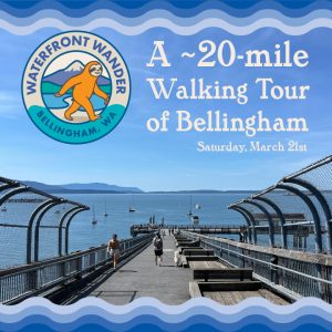 If you loved the Subdued Saunter, you'll love the Waterfront Wander! We will start with the more vigorous section, an 11 mile walk/hike that begins at the Fairhaven Green and hits some amazing landmarks like Clark's Point, Mud Bay, Woodstock Farm, and Teddy Bear Cove. After that, we'll loop back to Fairhaven along the Interurban Trail and take a break for lunch. This section has several steeper segments, stairs, narrow natural trails, and about 1,000 feet of elevation gain.